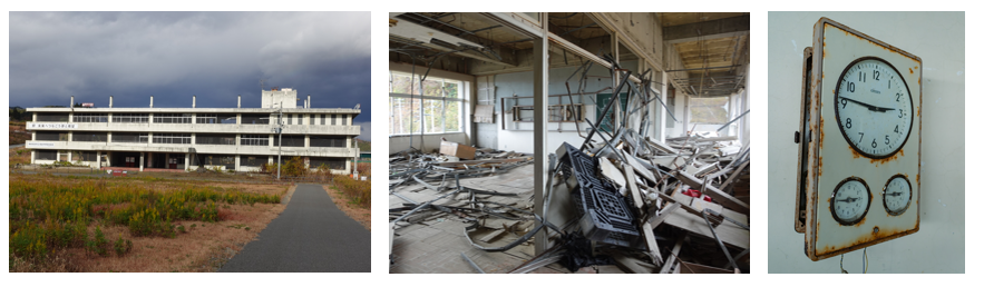 本校舎は、防災教育の重要性を伝える震災遺構として当時のまま保存されています。校舎内には、瓦礫や津波によって流入してきたものが残されており、被害の大きさを目の当たりにしました。